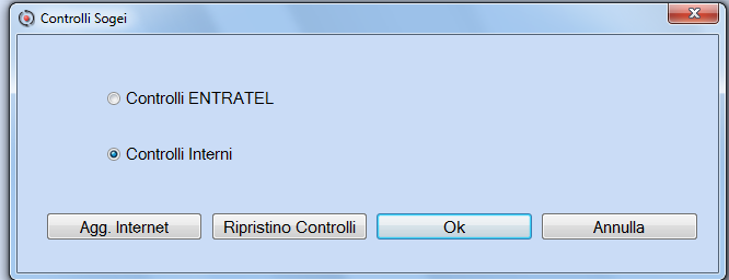 Se il posto di lavoro dal quale si esegue il controllo integrato ha un collegamento ad internet è possibile verificare e scaricare eventuali nuovi aggiornamenti rilasciati dall’AdE (pulsante [Agg. Internet]).